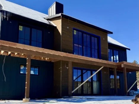 For the overall design of the house, we took cues from ranch and agrarian buildings found throughout Colorado, incorporating broken gable roofs and simple shed dormers. Because the home is located in a high-risk wildfire zone, exterior materials need to be highly fire-resistant. In keeping with our ranch-inspired aesthetic, the house is clad with standing seam metal roofing and cementitious board and batten siding.